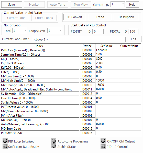 - If the value of each item is 0, that item is not used in the PID calculation.