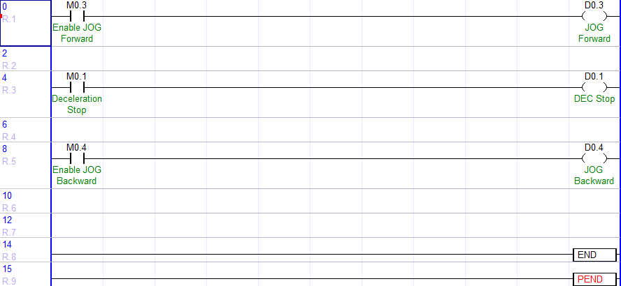 - In this example, D0 ~ D19 are reserved for operation data and D0 ~ D30 are reserved for positioning parameters.